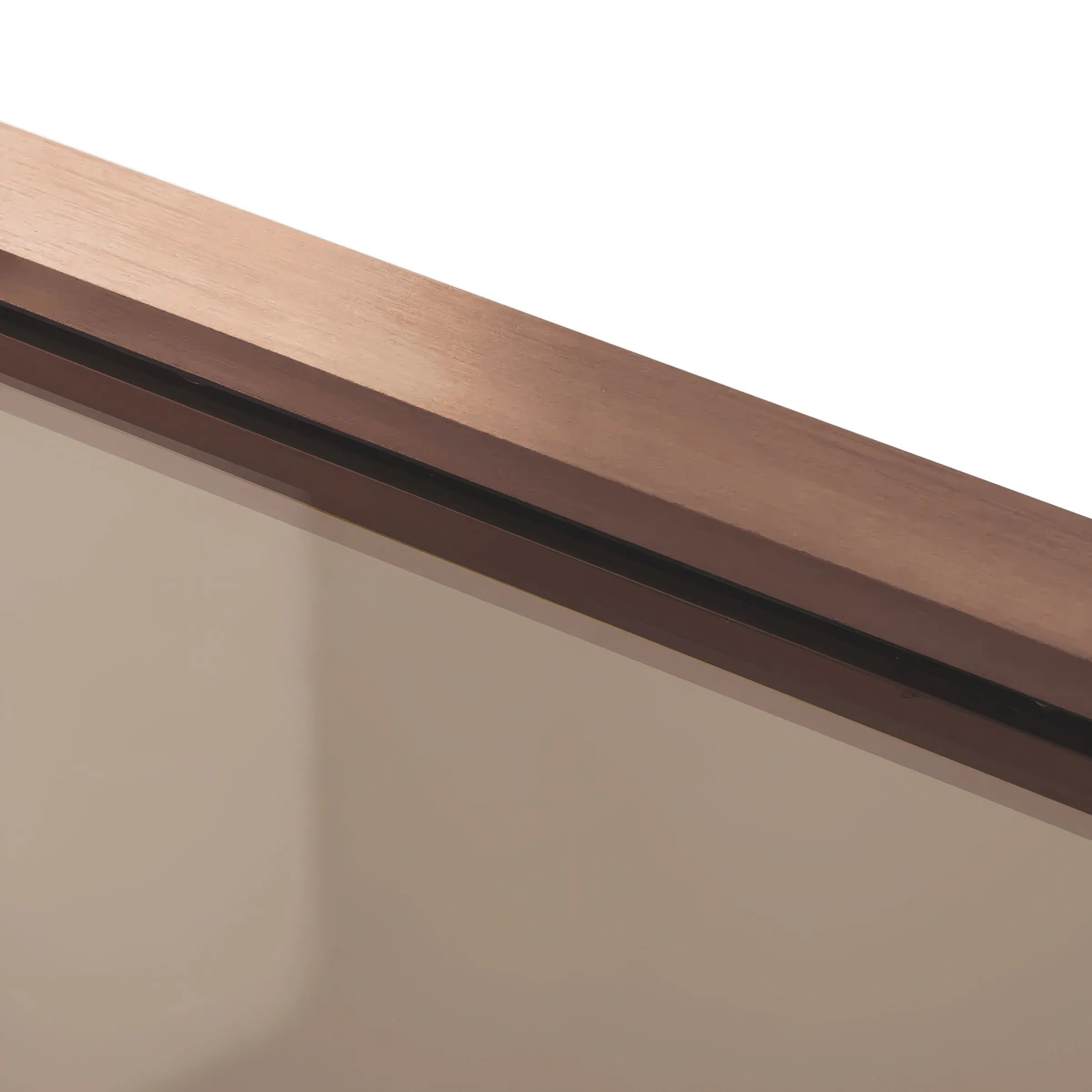 Całość konstrukcji uzupełniają profile, zawiasy i uchwyty w kolorze miedzi szczotkowanej, które tworzą harmonijne połączenie z brązowym szkłem. To kontrastowe zestawienie dodaje kabinie nowoczesnej elegancji, a jednocześnie sprawia, że staje się ona wyjątkowym elementem aranżacji wnętrza. Solidne zawiasy gwarantują stabilność i płynne otwieranie drzwi, a ergonomiczny uchwyt zapewnia komfort codziennego użytkowania.