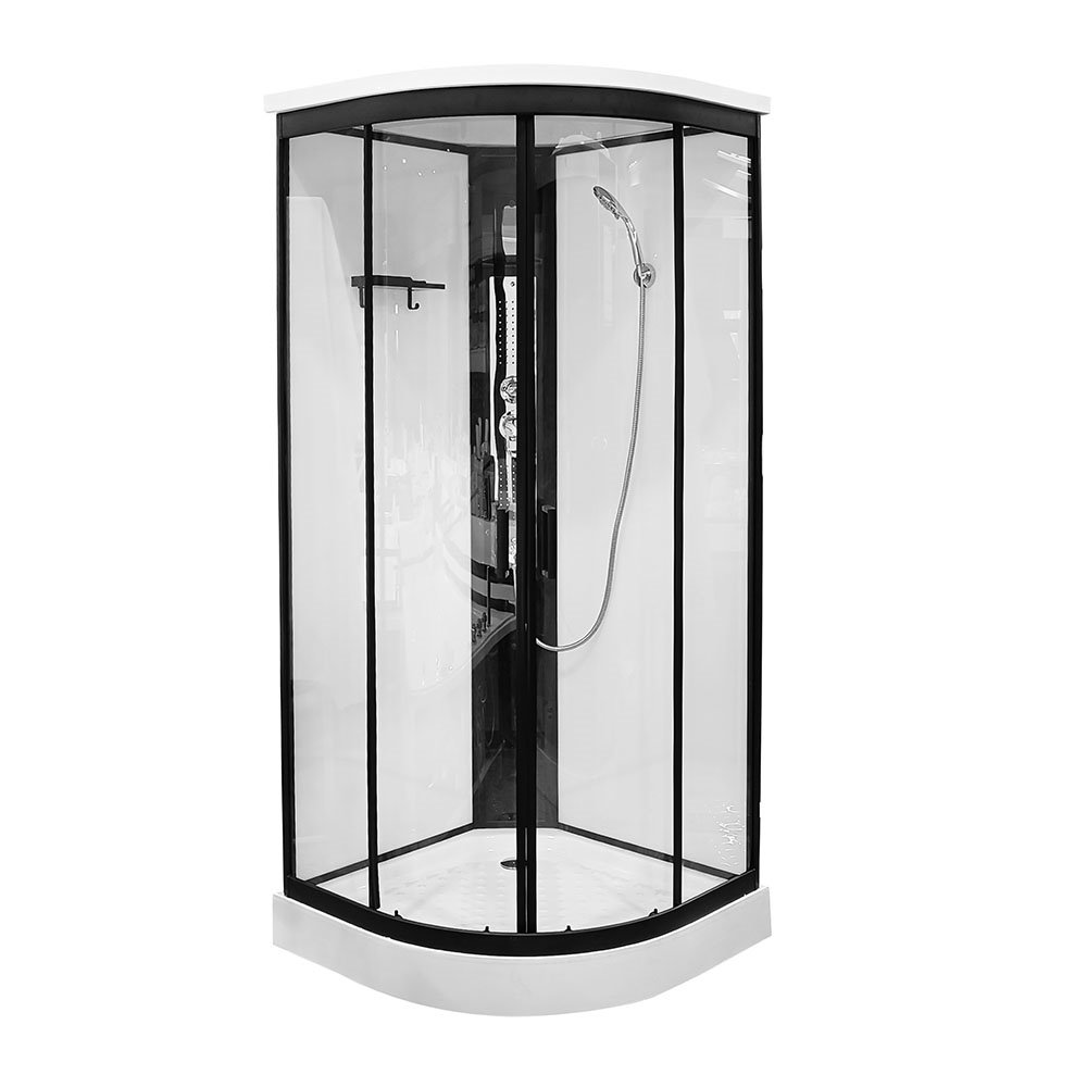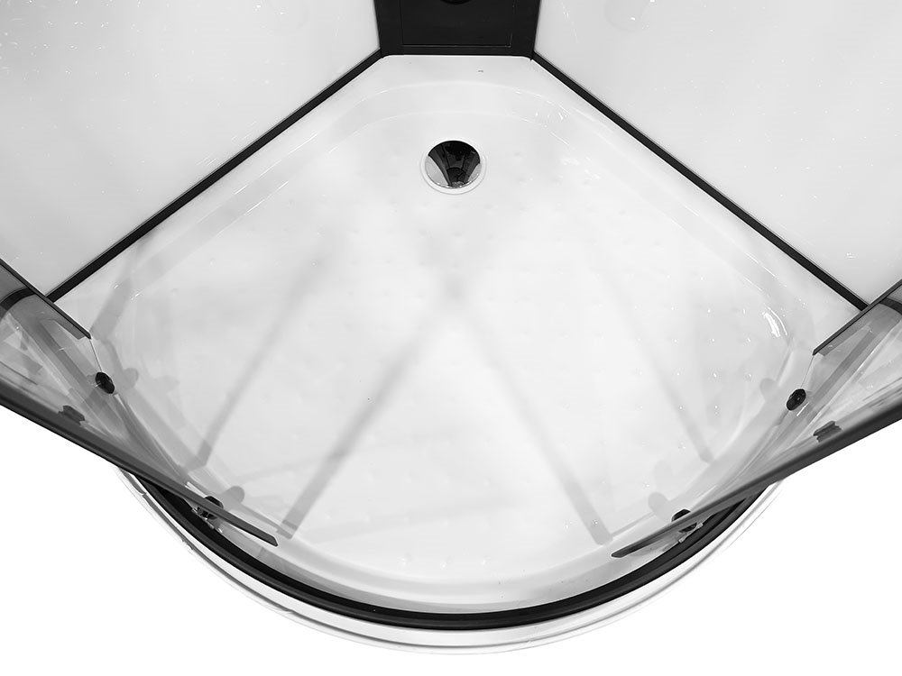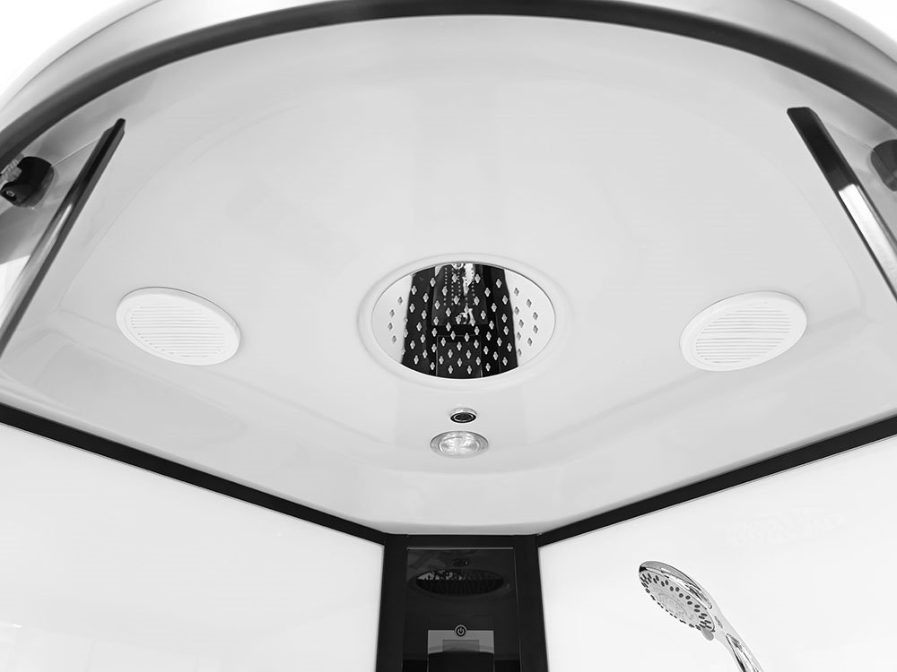 Wymiary zewnętrzne: 80 x 80 x 215 cm (wysokość mierzona z brodzikiem i deszczownicą)