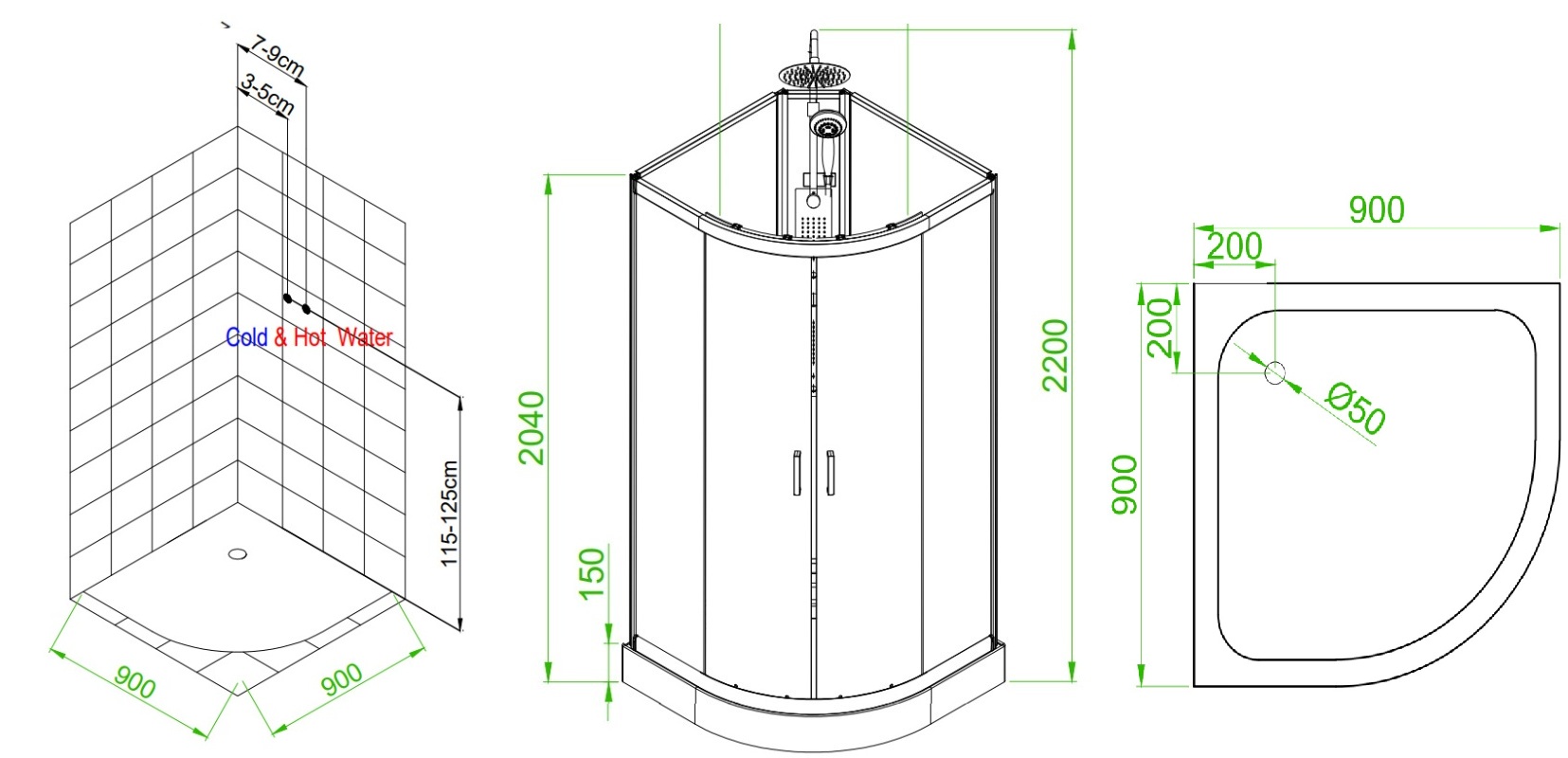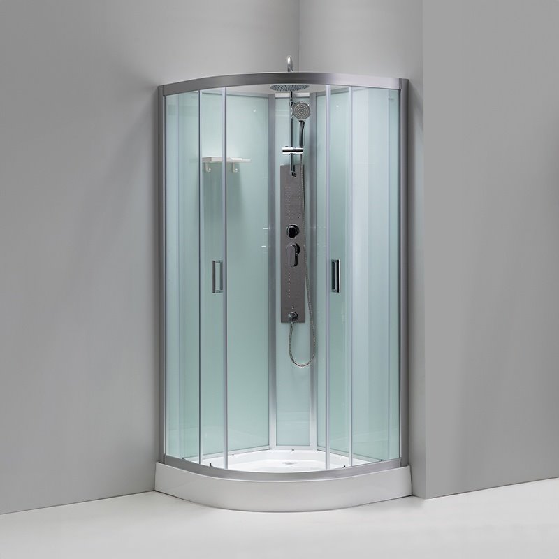 Opis produktu Kabina prysznicowa półokrągła zabudowana profil stal szczotkowana 90x90 Puerto