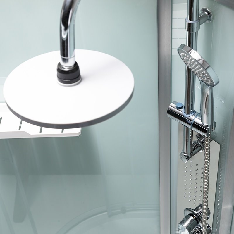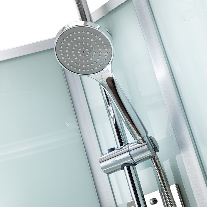 Model z pełną zabudową (ściany tylne + dach) eliminuje konieczność dodatkowego wykańczania ścian, co sprawia, że kabina jest dobrym wyborem do szybkiego montażu lub modernizacji łazienki.