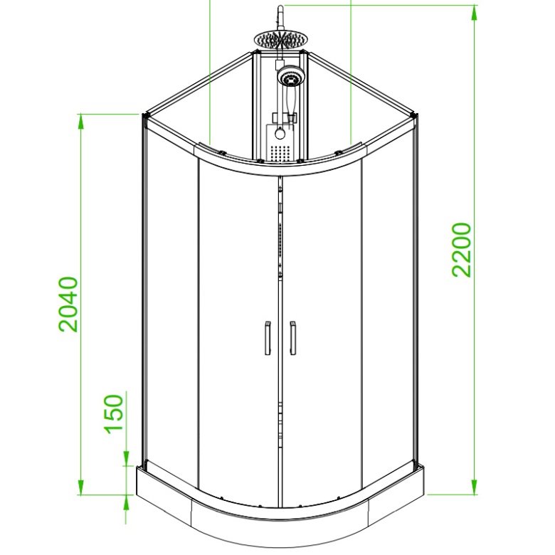 Kabina prysznicowa półokrągła 90x90 cm Puerto – zabudowana i gotowa do montażu