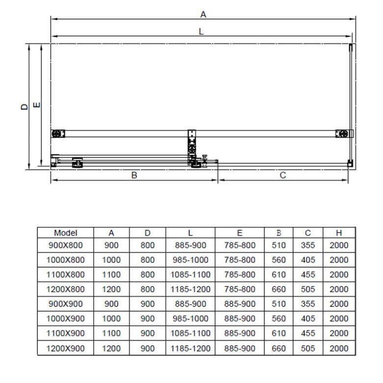 Opis produktu Kabina prysznicowa prostokątna drzwi rozsuwane narożna szkło 8 mm 100x90 cm ASTRA-CH-A-100+B90+E