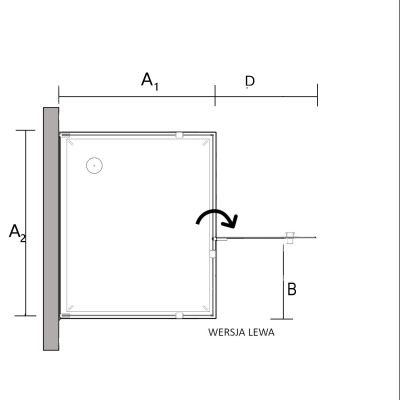 Wymiar 120 cm drzwi x 90 cm ścianka x 90 cm ścianka x 200 cm wysokość.