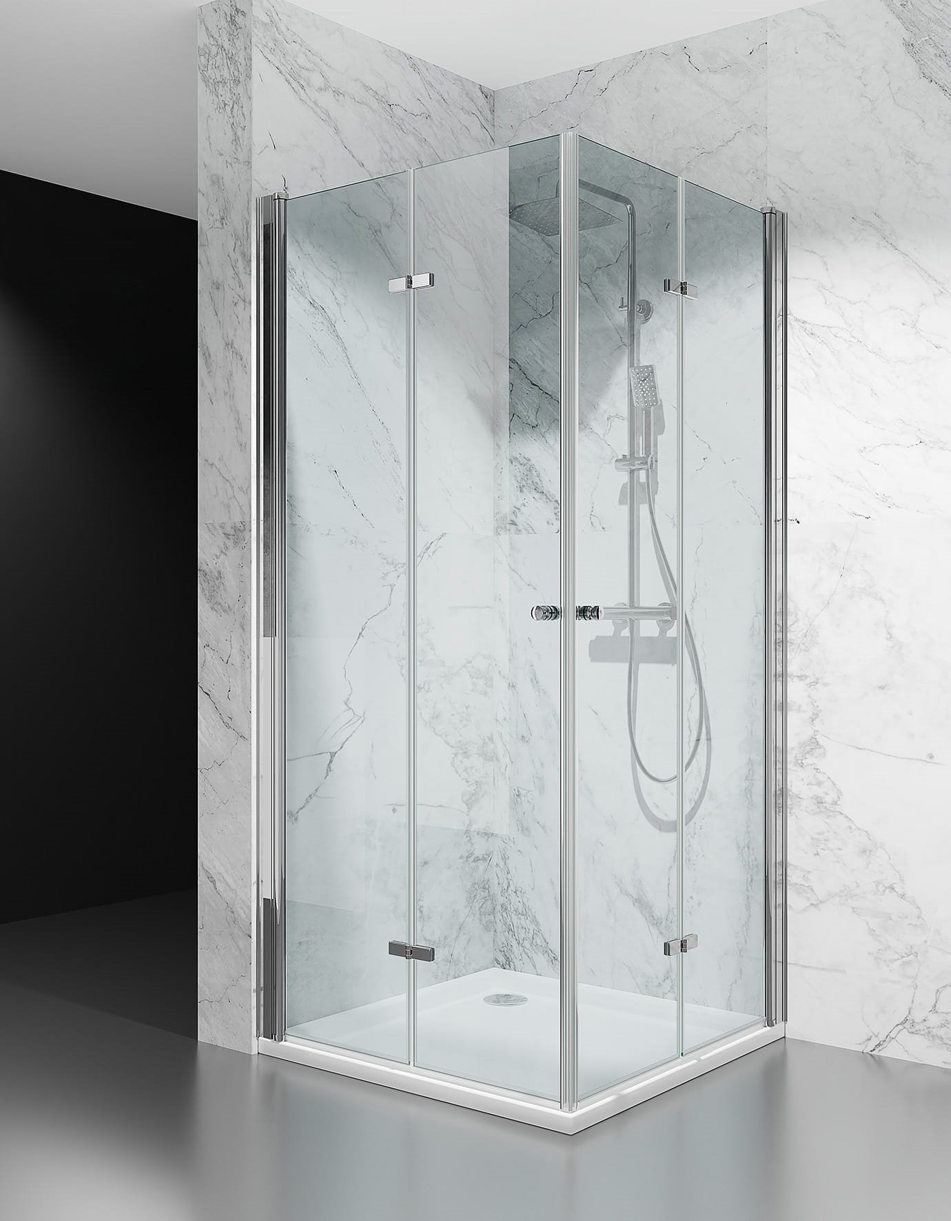 Opis produktu Kabina prysznicowa składana 80x85 cm szkło 6mm przeźroczyste profile chrom Swiss Liniger