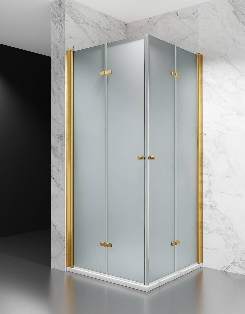 Opis produktu Kabina prysznicowa składana 80x95 cm szkło 6mm mrożone profile złoty mat Swiss Liniger