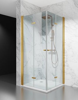 Opis produktu Kabina prysznicowa składana 90x90 cm szkło 6mm przeźroczyste profile złoty mat Swiss Liniger
