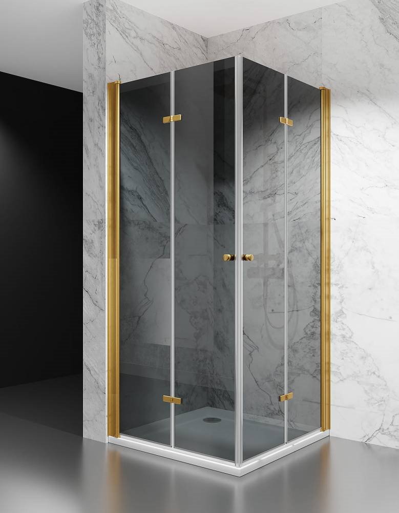 Opis produktu Kabina prysznicowa składana 90x95 cm szkło 6mm grafitowe profile złoty mat Swiss Liniger