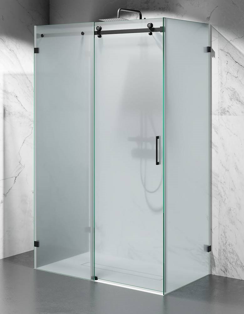 Opis produktu Kabina prysznicowa trójścienna 130x100x100 cm szkło 8mm mrożone profile czarne matowe Swiss Liniger