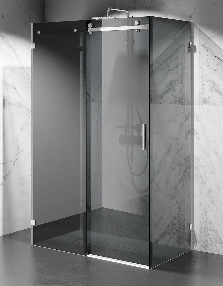 Kabina wyróżnia się zastosowaniem grafitowego (przydymionego) szkła hartowanego o grubości 8 mm, które nadaje całości wyrazisty, nowoczesny charakter i subtelnie przyciemnia przestrzeń, zapewniając jednocześnie lekkość wizualną i dyskrecję. Konstrukcja oparta jest na solidnych aluminiowych profilach w wykończeniu chrom połysk, które nie tylko podkreślają elegancję kabiny, ale również gwarantują trwałość i odporność na wilgoć.