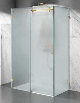 Opis produktu Kabina prysznicowa trójścienna 90x80x80 cm szkło 8mm mrożone profile złoty mat Swiss Liniger