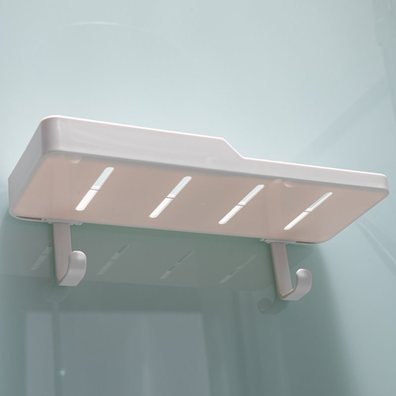 - biała półka z uchwytami na ręczniki