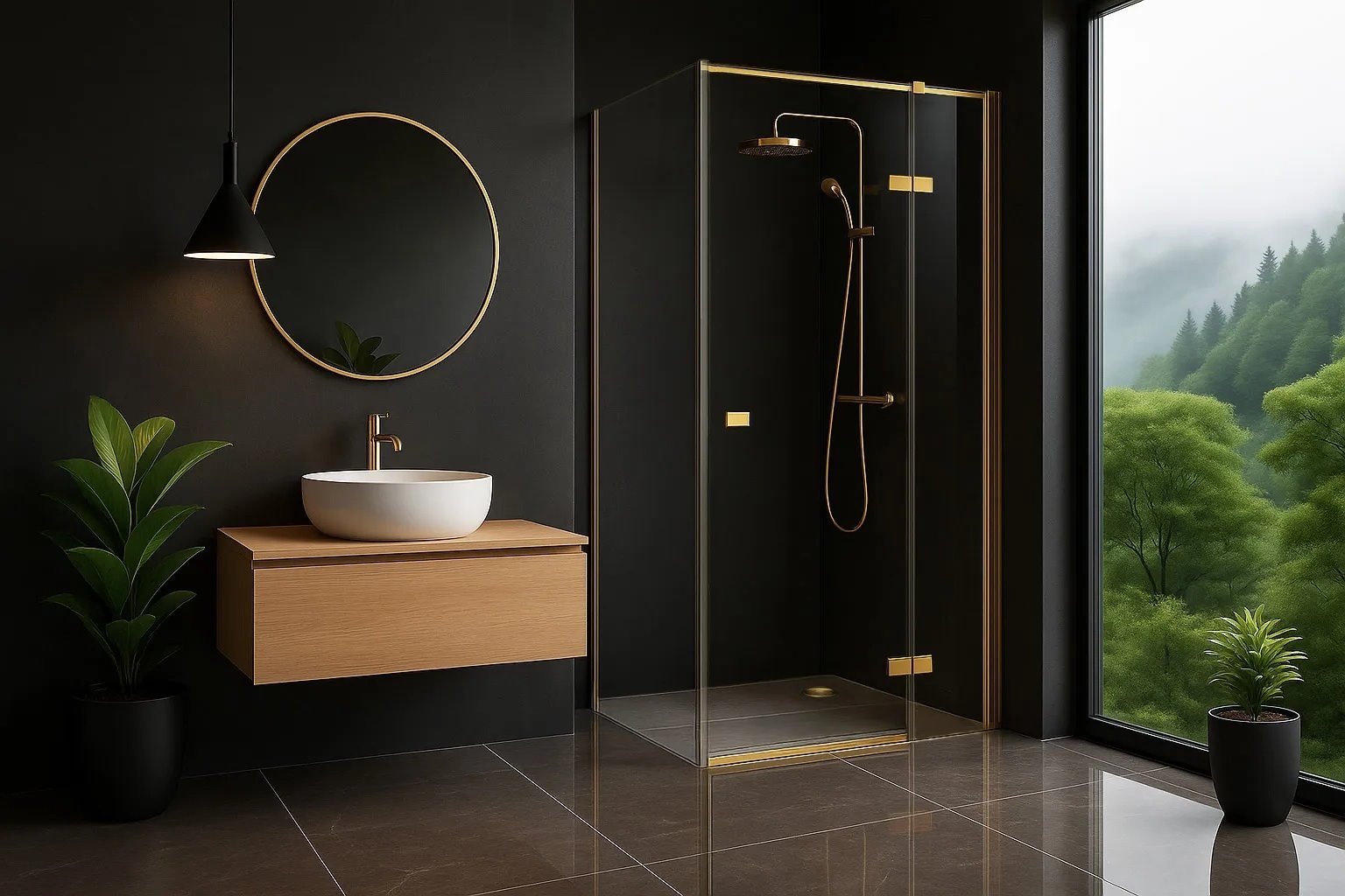 Kabina prysznicowa narożna Atlas – elegancja w złotym szczotkowanym wykończeniu