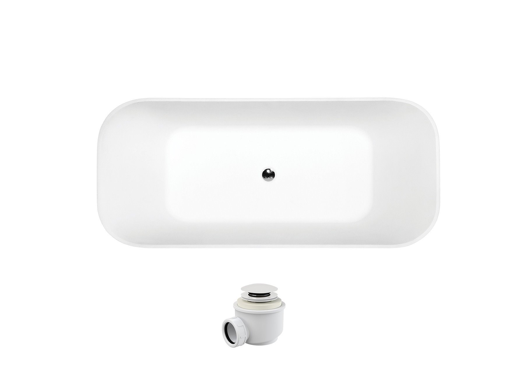 Opis produktu Matowa wanna wolnostojąca z konglomeratu + klik-klak biały 160 cm Assos Matt Besco WMMB-160AKW