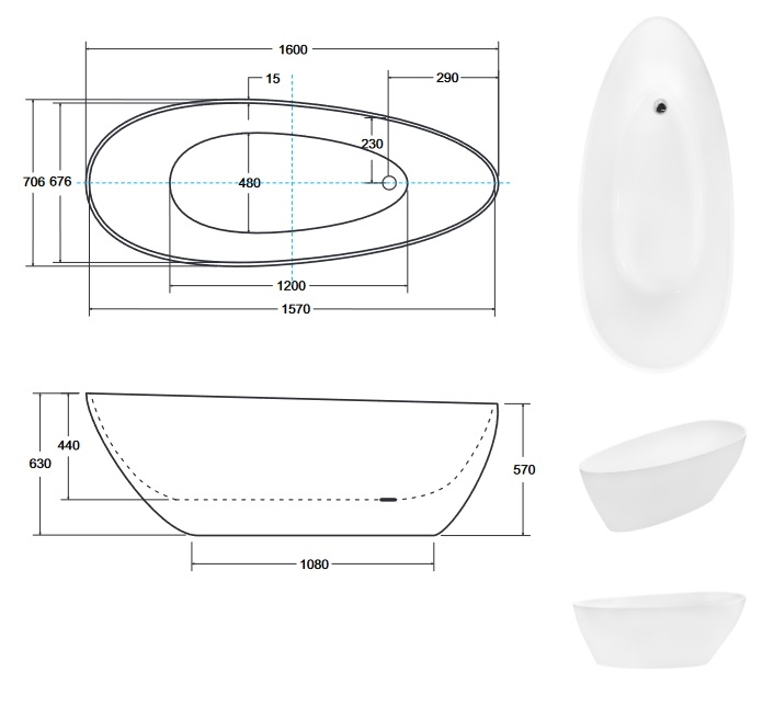 Opis produktu Matowa wanna wolnostojąca z konglomeratu + klik-klak chrom Goya Matt 160 Besco WMMB-160G
