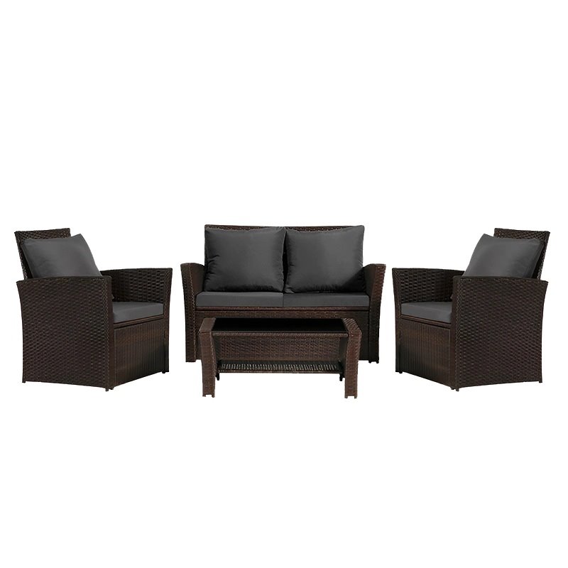 Opis produktu Meble ogrodowe z technorattanu sofa, stół, fotele zestaw Lagos kolor brąz