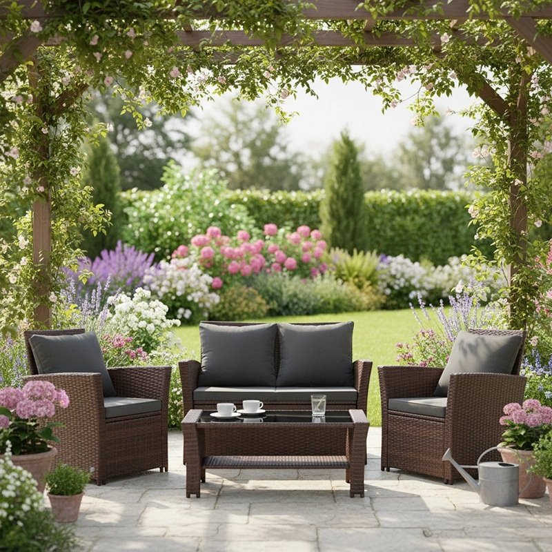 Uniwersalny design sprawia, że kolekcja Lagos dobrze komponuje się zarówno na tarasie, balkonie, jak i w ogrodzie zimowym. Połączenie klasycznej formy z nowoczesnymi detalami nadaje aranżacji spójny, elegancki charakter.