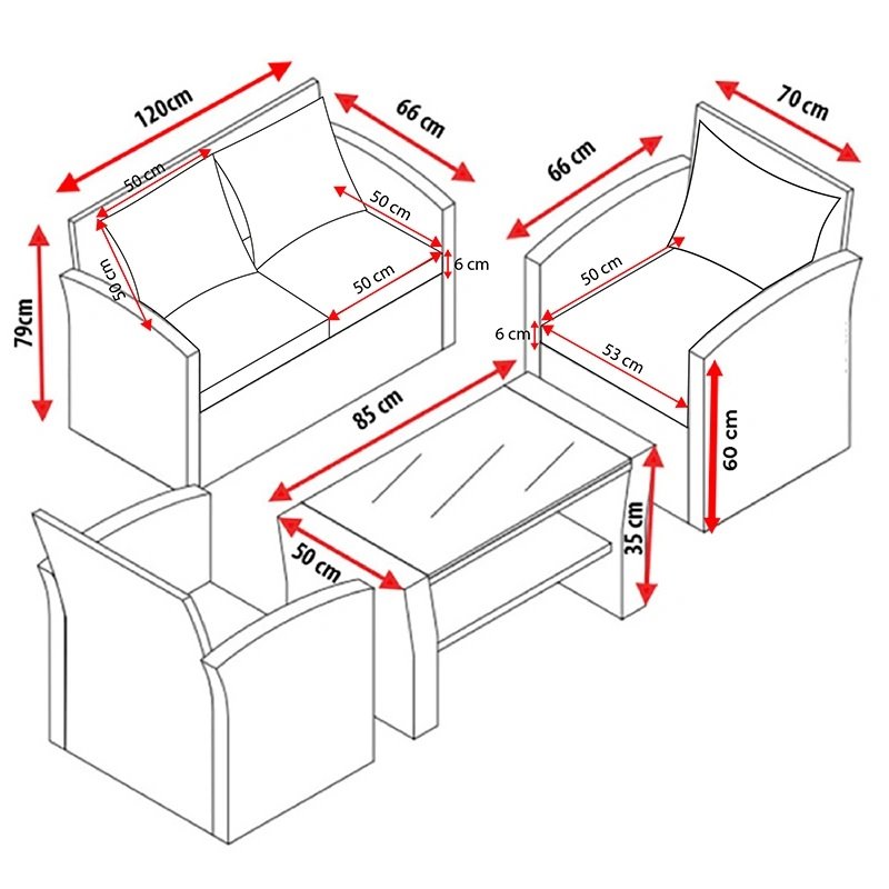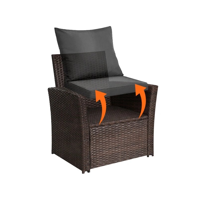 Zestaw wyposażono w grube, wygodne poduszki, które zapewniają odpowiednie podparcie podczas odpoczynku. Zdejmowane pokrowce z zamkiem błyskawicznym ułatwiają utrzymanie ich w czystości.