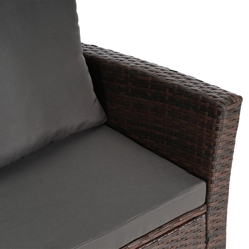 Stalowy stelaż malowany proszkowo zapewnia odporność na korozję i stabilność konstrukcji. Plecionka z technorattanu wyróżnia się wysoką odpornością na wilgoć, promieniowanie UV oraz zmienne temperatury, co pozwala na bezproblemowe użytkowanie na zewnątrz.