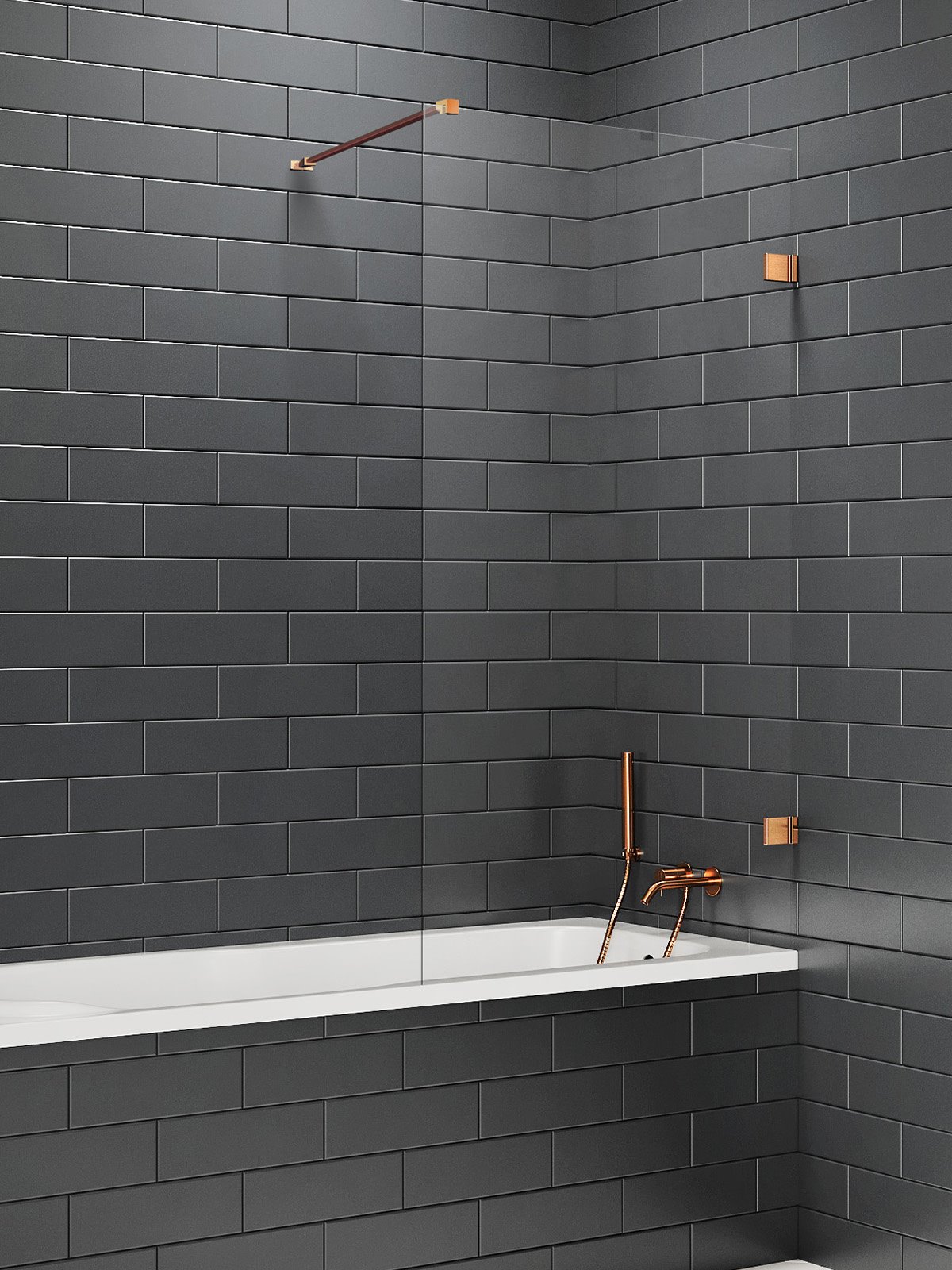 Charakterystyka parawanu wannowego Avexa wykończenie miedź szczotkowana :