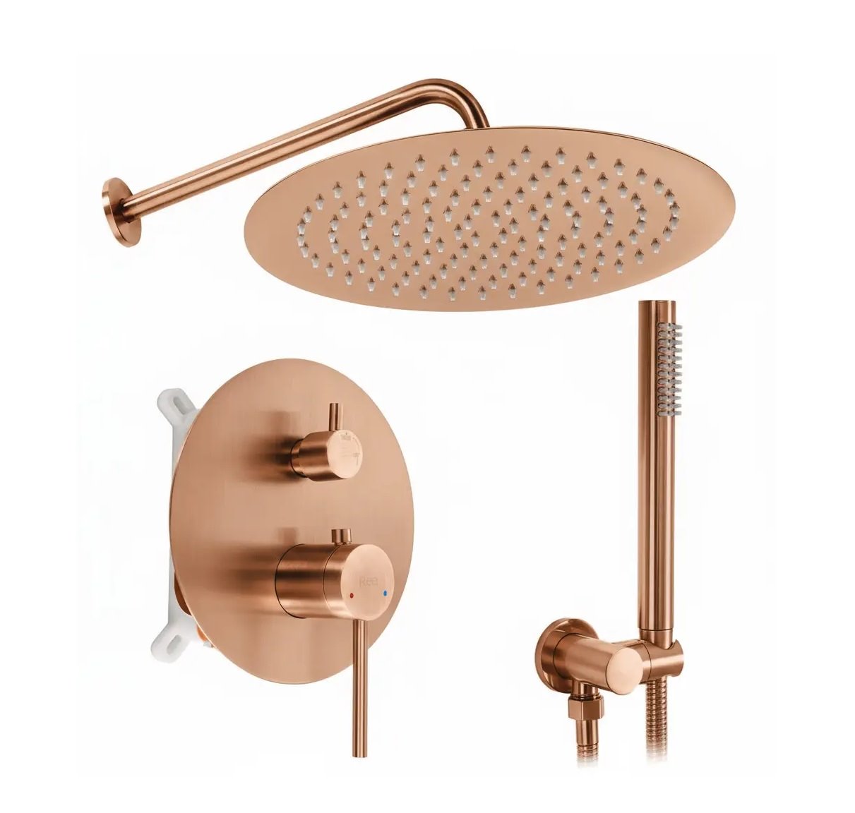 Zestaw prysznicowy podtynkowy Rea Foss/Clif Miedź Szczotkowana to doskonałe połączenie nowoczesnej estetyki, trwałości i komfortu użytkowania. Zaprojektowany z myślą o minimalistycznych łazienkach, stanowi idealne rozwiązanie dla osób, które cenią elegancję w czystej formie oraz niezawodność na lata.