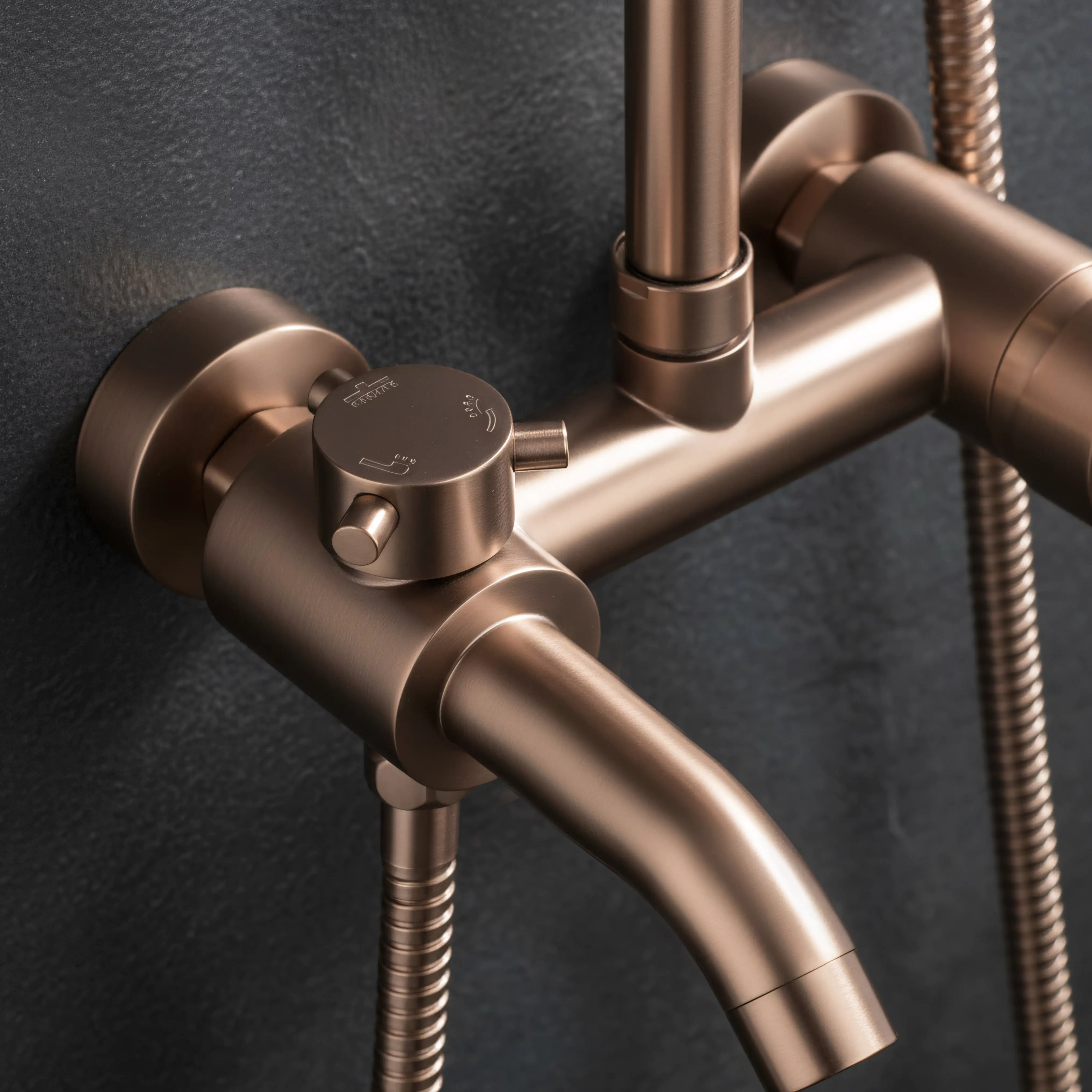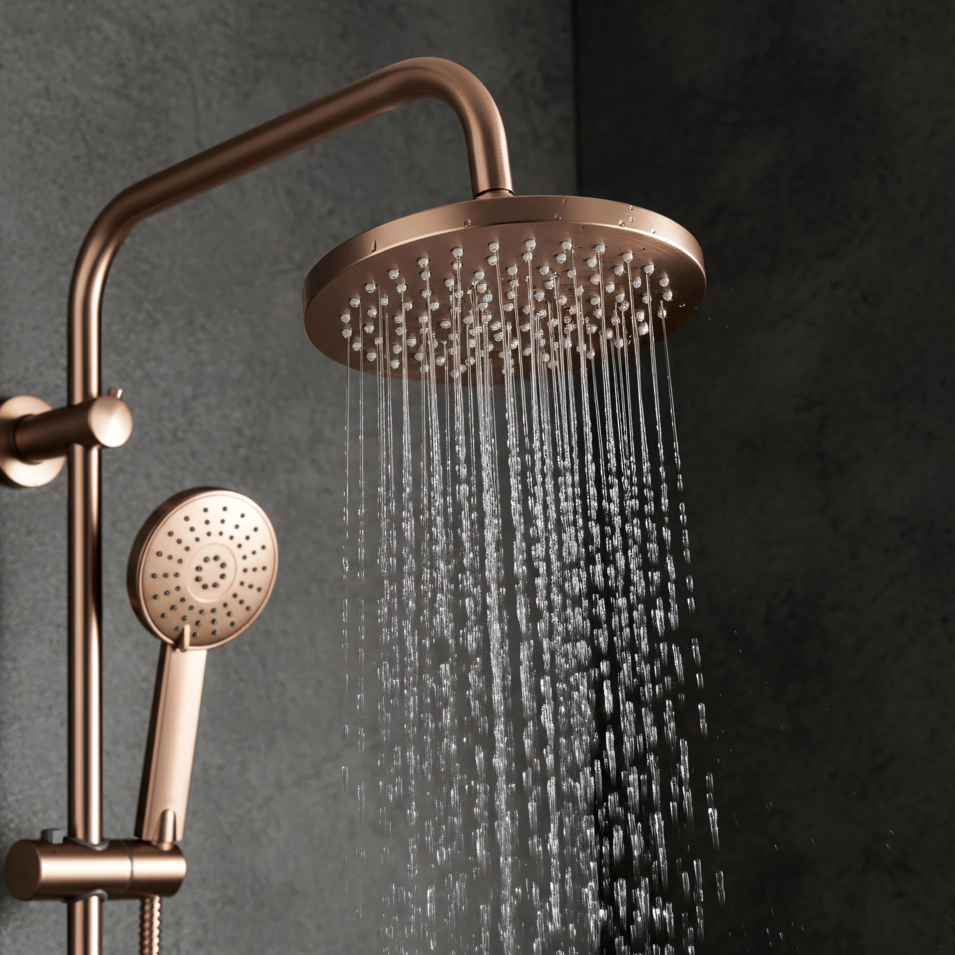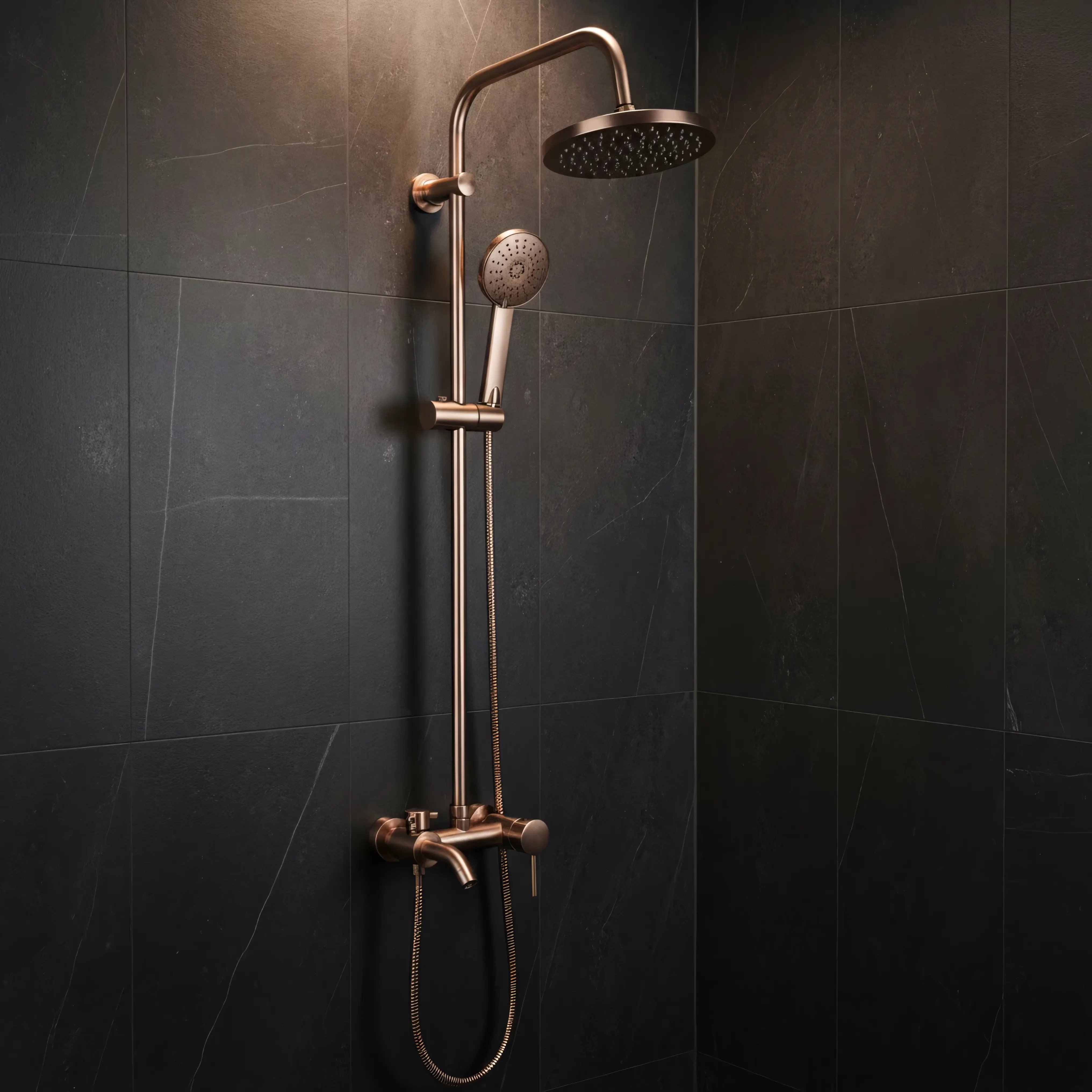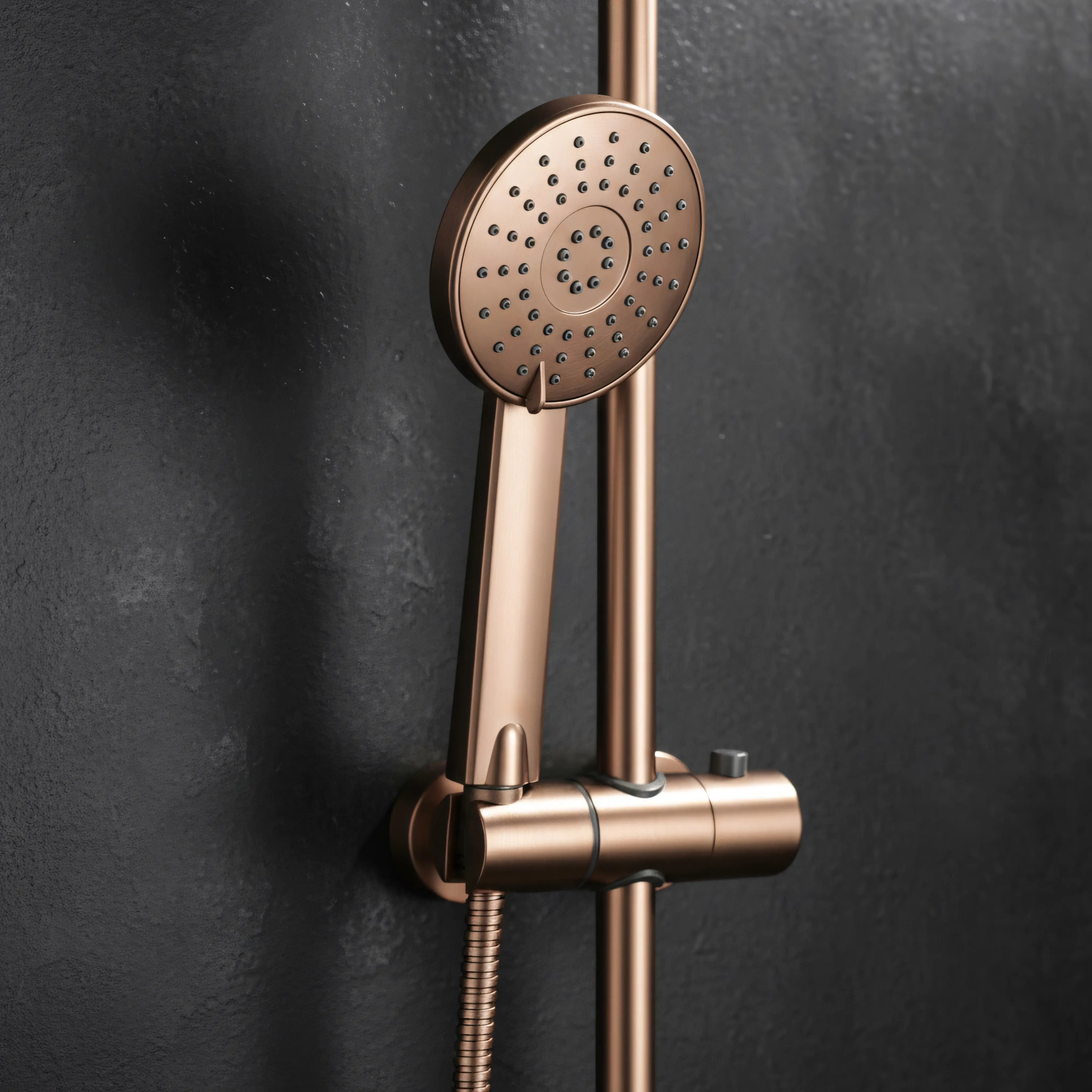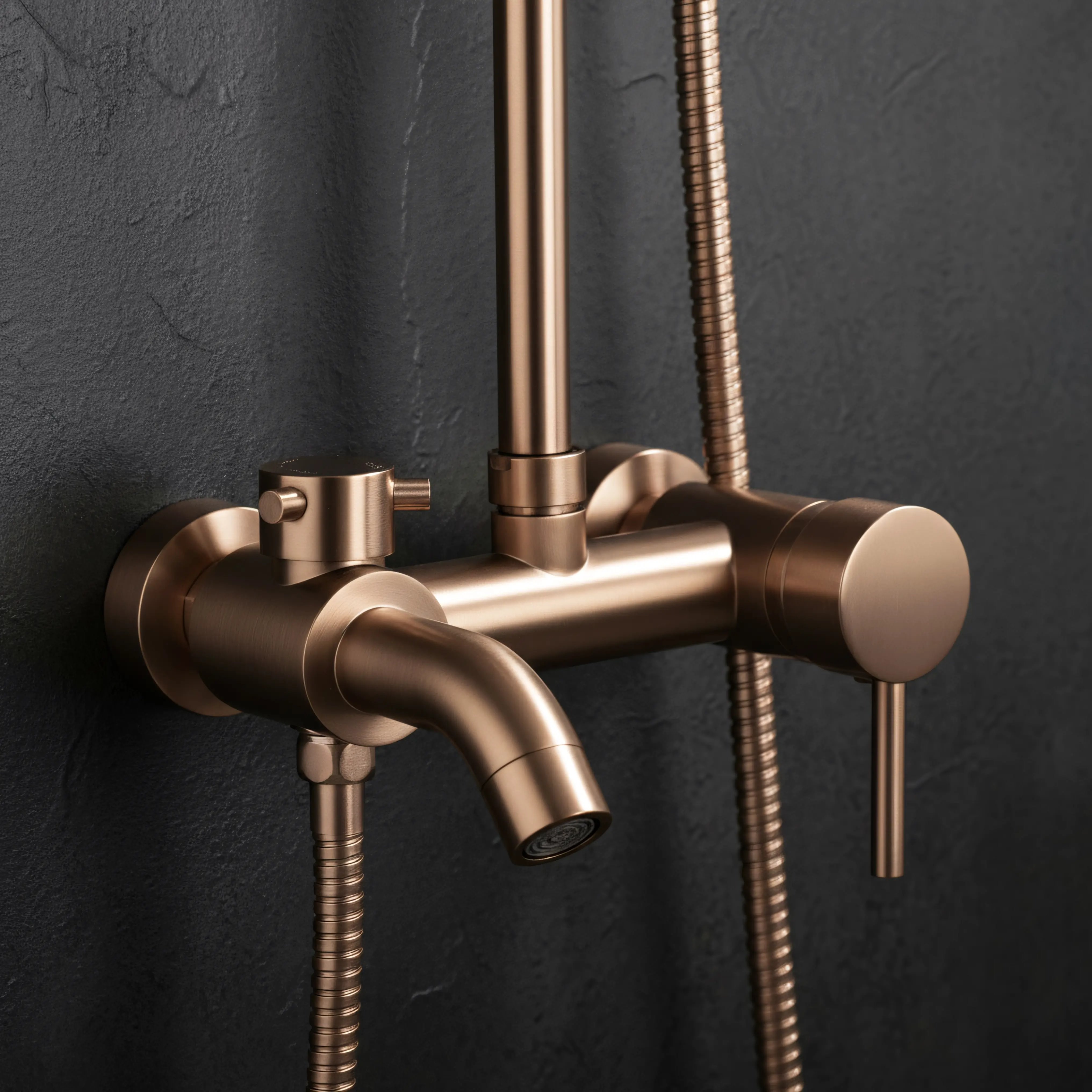 Opis produktu Miedź szczotkowana zestaw prysznicowy z wylewką Luis Rea