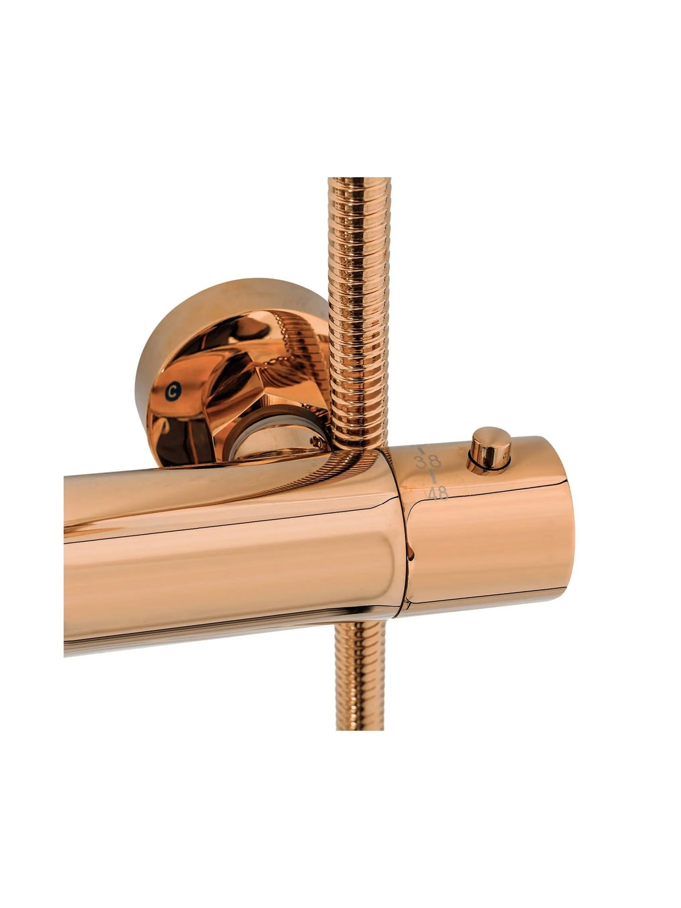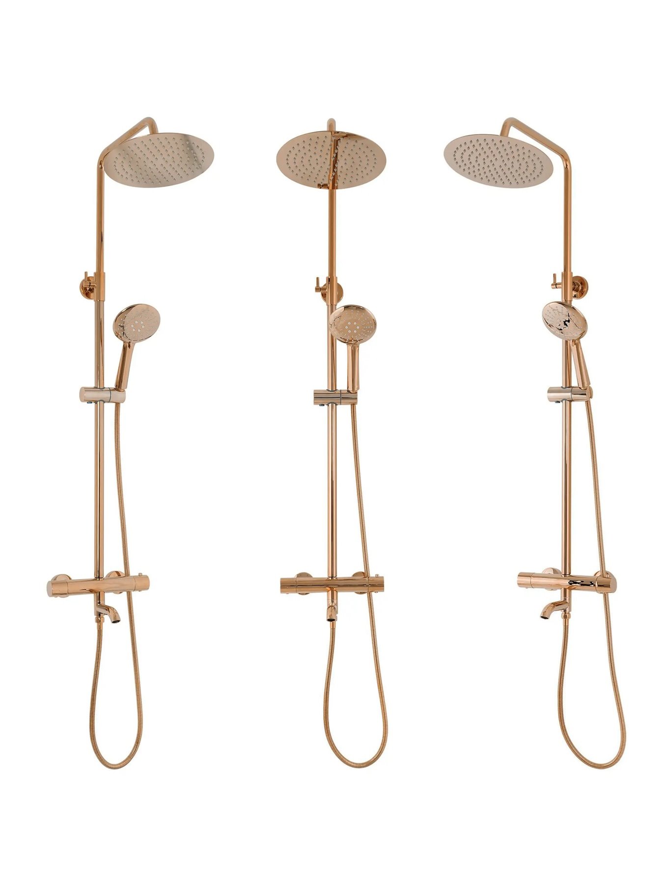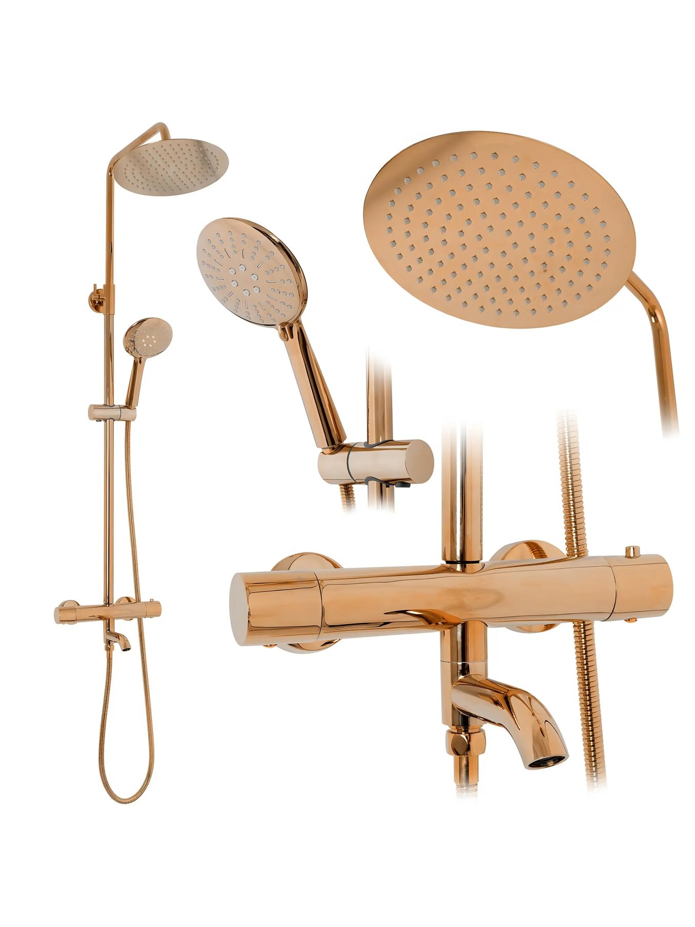 Opis produktu Miedziany zestaw prysznicowy z termostatem i wylewką Lungo Rea