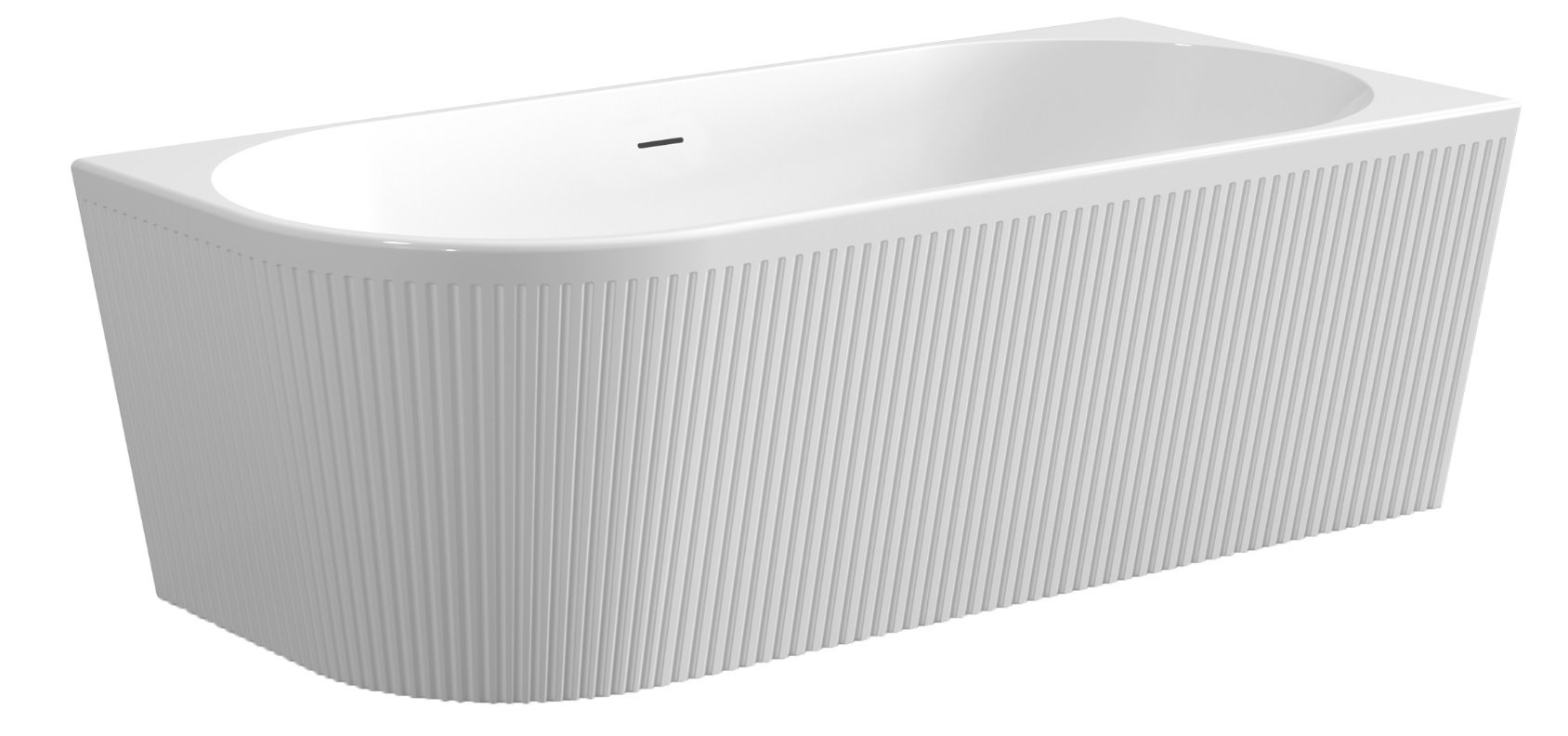 Ryflowana struktura zewnętrzna nadaje bryle nowoczesnej dynamiki i wyraźnej tożsamości wizualnej. Klasyczna biel w połysku podkreśla czystość formy i ułatwia dopasowanie wanny do różnych stylów aranżacyjnych – od minimalistycznych po bardziej dekoracyjne.