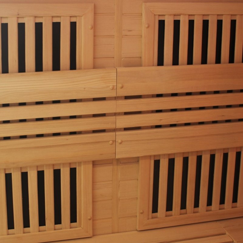 Konstrukcja sauny została wykonana z wytrzymałego drewna jodłowego pozyskiwanego z Kanady. Ten naturalny materiał wyróżnia się odpornością, stabilnością i przyjemnym aromatem, który buduje atmosferę sprzyjającą relaksowi. Ergonomiczne siedziska i starannie dopracowane detale zapewniają komfort nawet podczas dłuższych sesji.