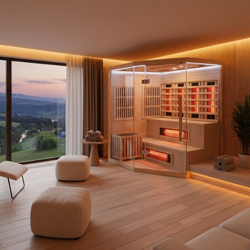 Sauna 2w1 MOSS łączy w jednej kabinie tradycyjną saunę fińską z nowoczesną technologią infrared, dzięki czemu możesz wybrać dokładnie taki rodzaj ciepła, jakiego potrzebujesz danego dnia. To rozwiązanie dla osób, które chcą połączyć klasyczny, intensywny seans w wysokiej temperaturze z delikatniejszą, głęboko działającą terapią promieniami podczerwonymi.W trybie fińskim piec podnosi temperaturę powietrza do ok. 60–85°C przy wilgotności na poziomie 5–15%. Takie warunki sprzyjają oczyszczaniu organizmu z toksyn, rozluźnieniu mięśni oraz odprężeniu po całym dniu. Z kolei funkcja infrared kieruje ciepło w głąb tkanek, wspierając regenerację, łagodzenie napięć i poprawę samopoczucia bez odczuwania aż tak wysokiej temperatury powietrza.