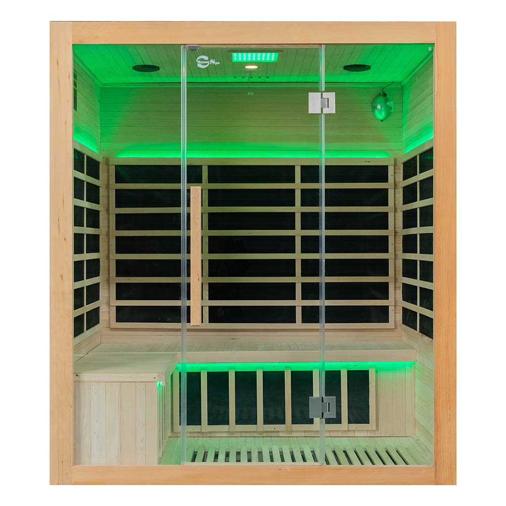 Oświetlenie sauny (LED – zamontowane nad promiennikami): tak (siedem rodzajów kolorów)