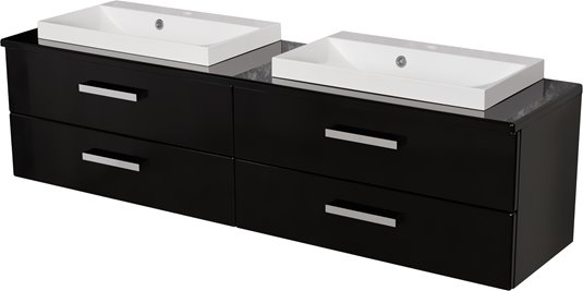 Korpus wykonany został z wytrzymałych płyt MDF, pokrytych wysokogatunkową folią meblową w czarnym połysku. Gładka powierzchnia prezentuje się niezwykle efektownie, a jednocześnie zapewnia wysoką odporność na wilgoć oraz łatwość w pielęgnacji.