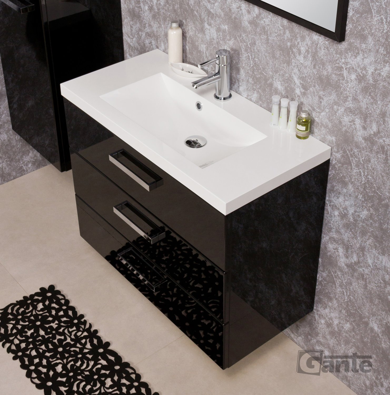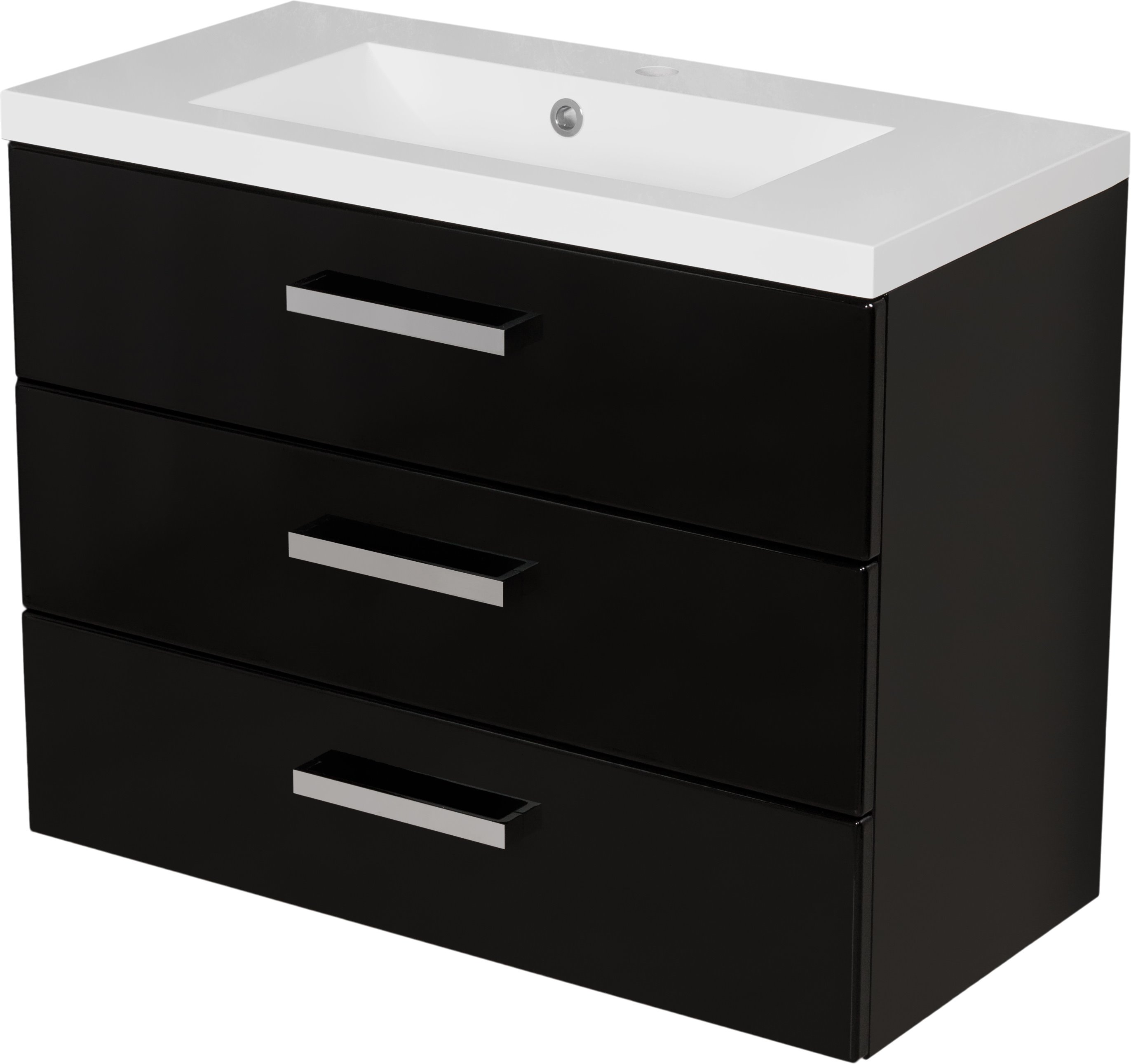 Nowoczesna szafka łazienkowa FOKUS NEW w czarnym połysku – elegancja w kompaktowej formieStylowa szafka łazienkowa FOKUS NEW w czarnym połysku to doskonałe rozwiązanie do mniejszych łazienek, które cenią sobie nowoczesny wygląd i funkcjonalność. Mebel został wyposażony w dolomitową umywalkę naszafkową w kolorze białym, która zapewnia estetyczny wygląd oraz chroni blat przed zachlapaniami.