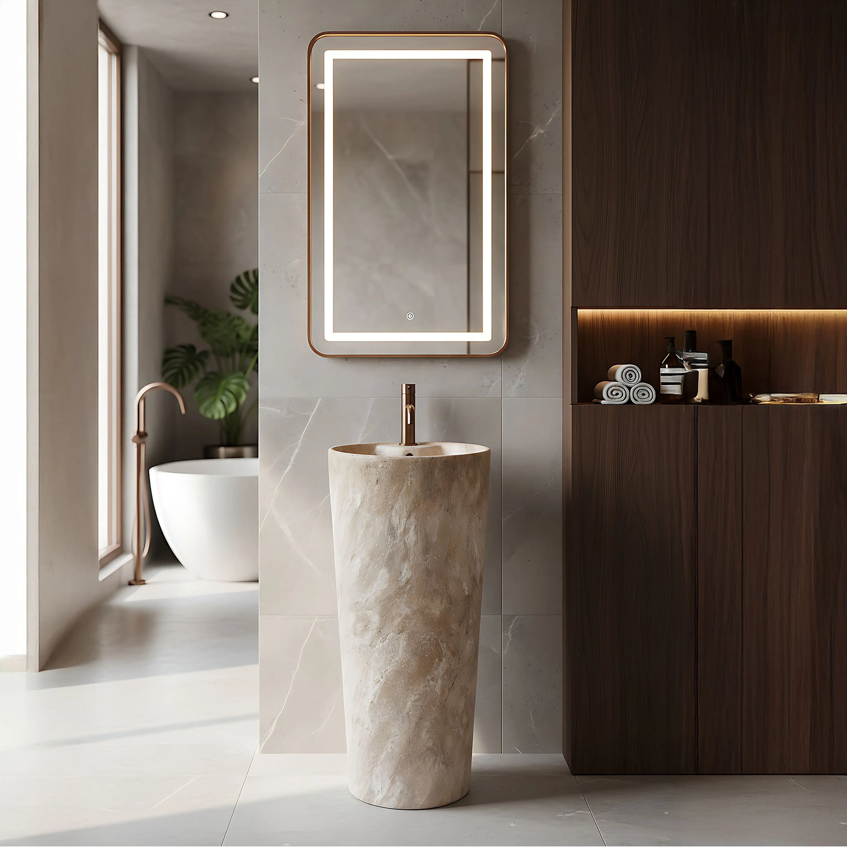 Typ montażu: wolnostojący – umożliwia stworzenie efektownej, centralnej strefy mycia i podkreśla luksusowy charakter wnętrza.