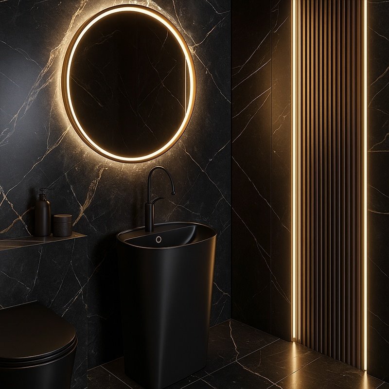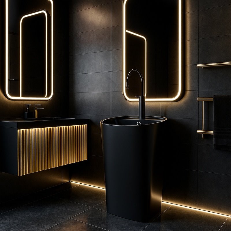 Klasyczna czerń nadaje umywalce elegancji i sprawia, że świetnie komponuje się zarówno z nowoczesnymi wnętrzami, jak i bardziej stonowanymi, ponadczasowymi aranżacjami.