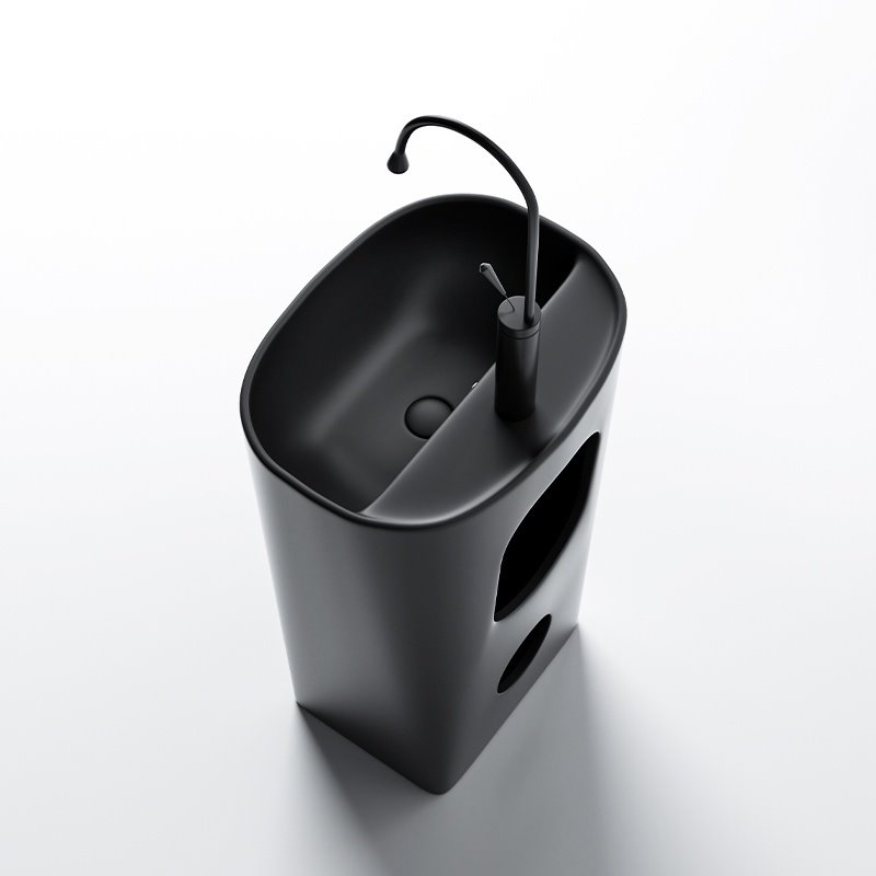 Monolityczna, wolnostojąca konstrukcja nadaje umywalce rzeźbiarski charakter. Minimalistyczny design doskonale wpisuje się w nowoczesne, designerskie i luksusowe aranżacje łazienek.