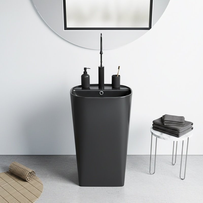 Opis produktu Umywalka wolnostojąca ceramiczna owalna czarny mat 49x37x83 cm CLARO-MTB-490