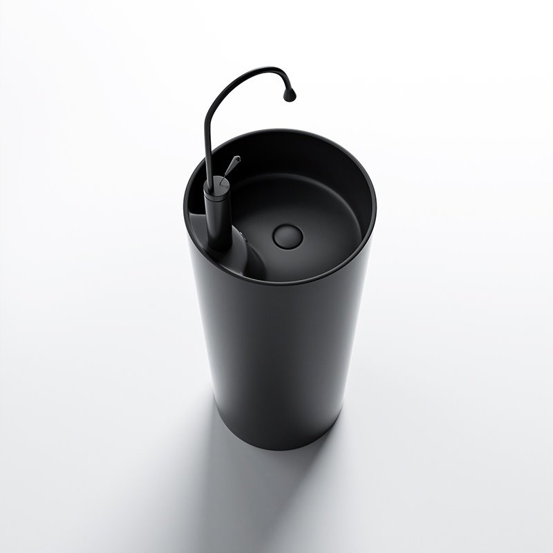 Monolityczna, wolnostojąca konstrukcja nadaje umywalce rzeźbiarski charakter. Minimalistyczny design doskonale wpisuje się w nowoczesne, designerskie i luksusowe aranżacje łazienek.