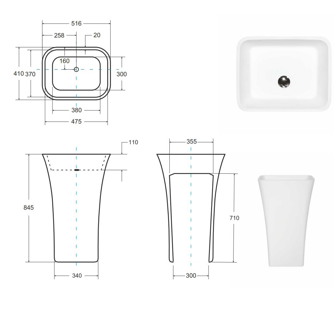 Opis produktu Umywalka wolnostojąca z konglomeratu czarno-biały mat Assos Matt B&W Besco UMMC-A-WO