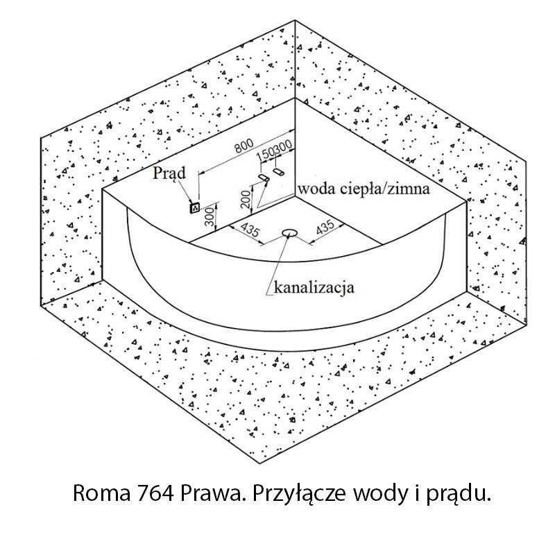 Opis produktu Wanna narożna z hydromasażem narożna 150x150 cm Roma 764 Hydrosan Prawa
