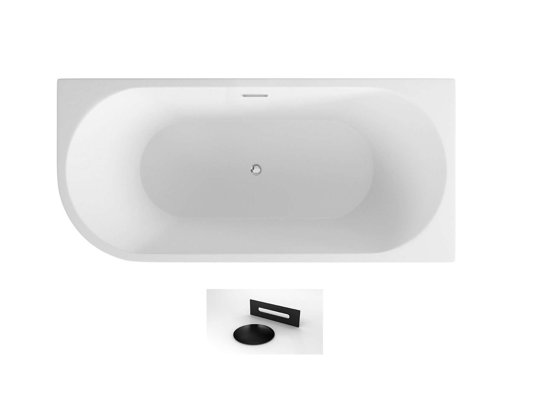 Opis produktu Wanna przyścienna narożna prawa syfon z przelewem czarny mat 170 cm Zoya Besco WAS-170-ZPC