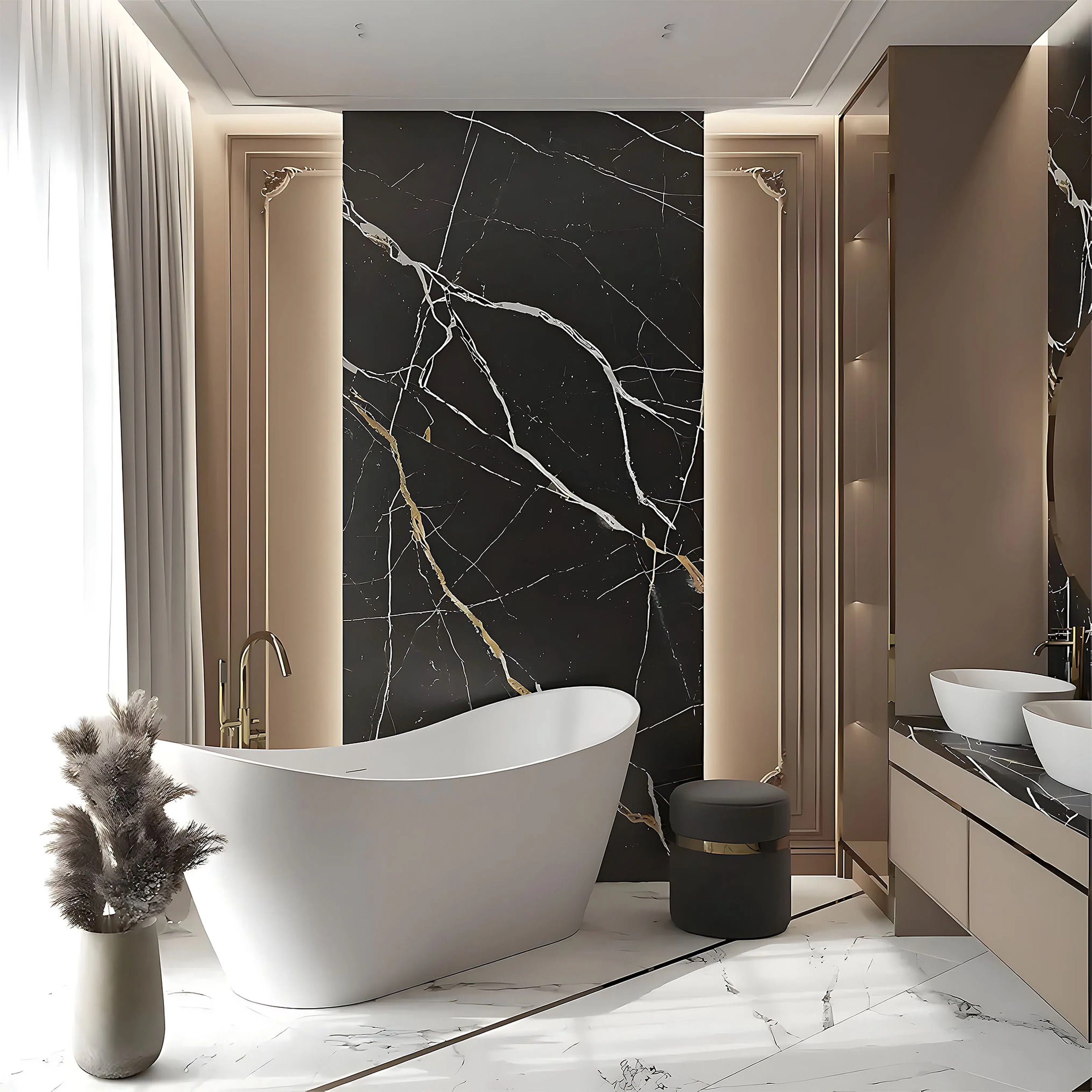 Wanna wolnostojąca Ferrano daje pełną swobodę aranżacyjną — doskonale prezentuje się zarówno w przestronnych salonach kąpielowych, jak i w nowoczesnych łazienkach domowych. To wyrazisty element wyposażenia, który nadaje wnętrzu luksusowy charakter, podnosi estetykę przestrzeni i zaprasza do chwili prawdziwego relaksu po długim dniu.