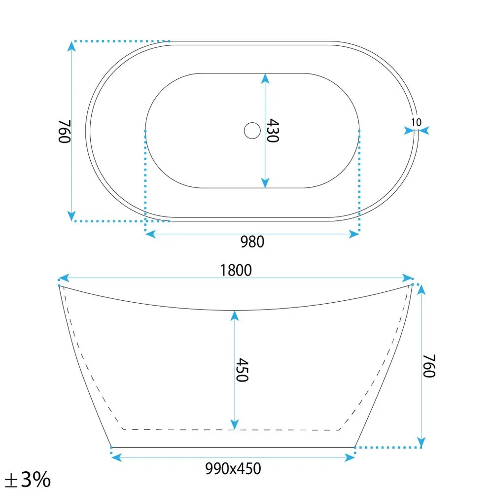 W komplecie znajduje się nowoczesny i designerski przelew wraz z syfonem i korkiem klik kalk. Wanna akrylowa nie absorbuje temperatury otoczenia, przez co zawsze jest przyjemna i ciepła przy zetknięciu z ciałem.