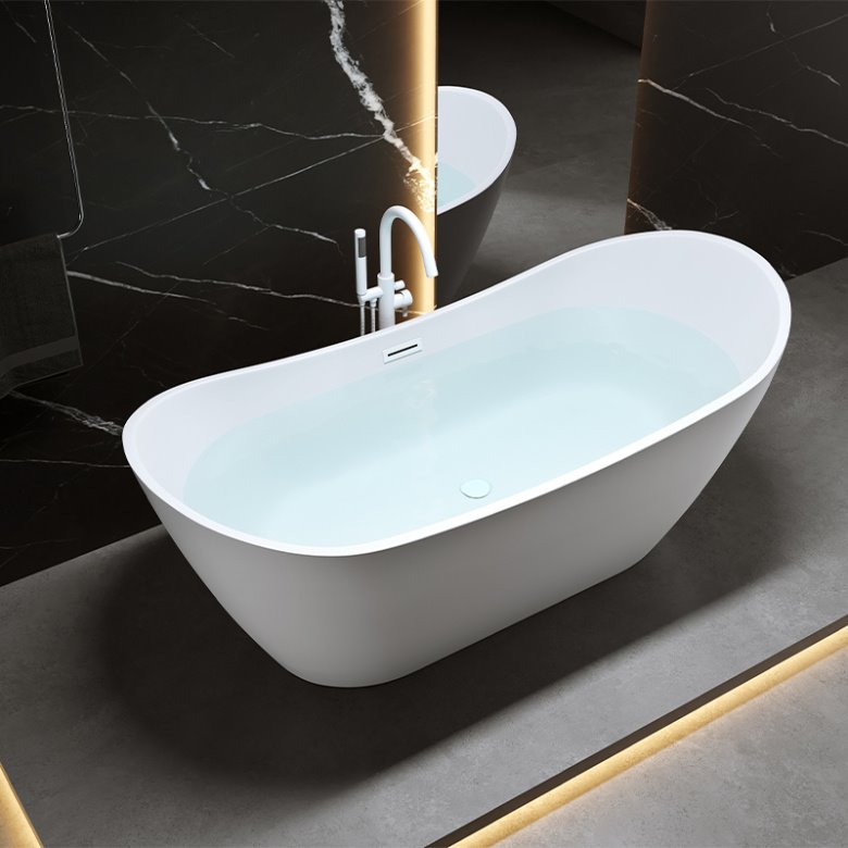 Nasze wanny wolnostojące są wykonane z białego akrylu sanitarnego oraz wzmocnionego włókna szklanego, dodatkowo posiada powłokę Anti-Wipe. Każda z naszych wanien to połączenie nowoczesnego stylu z utrzymaniem komfortu użytkowania na najwyższym poziomie. Powierzchnia wanny jest idealnie gładka, bez jakichkolwiek śladów porowatości dzięki czemu jest bardzo łatwa do czyszczenia. Wysokiej jakości akryl sanitarny doskonale izoluje ciepło oraz sprawia, że powierzchnia wykazuje dobrą ochronę przed brudem i zanieczyszczeniami. Prostokątny kształt wanny pozwala na optymalne wykorzystanie przestrzeni przy zachowaniu maksymalnego komfortu podczas kąpieli.