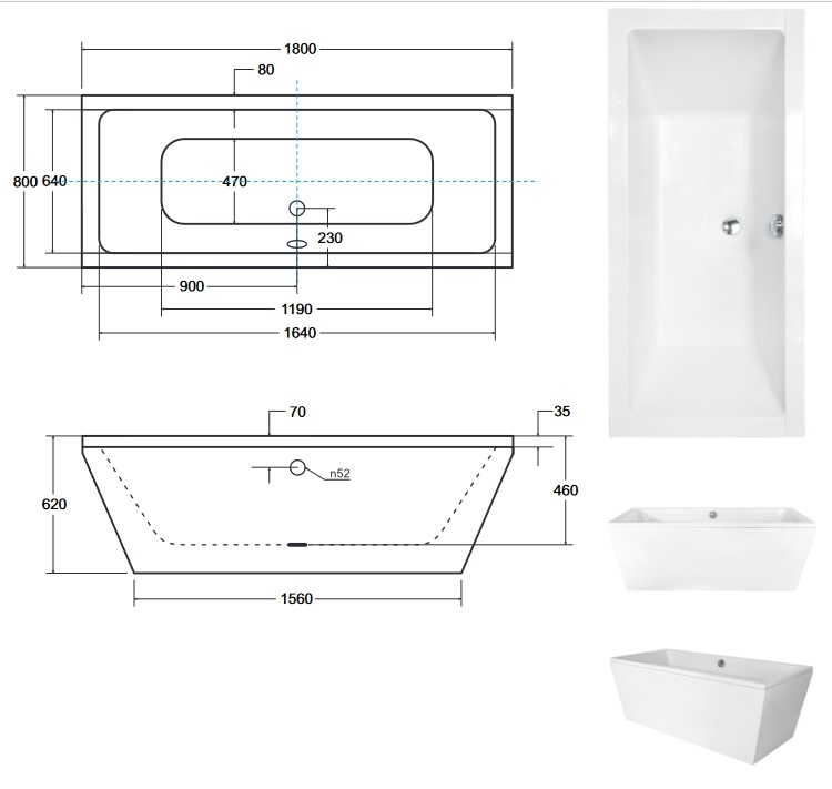 Opis produktu Wanna wolnostojąca prostokątna syfon złoty Vera 180 Besco