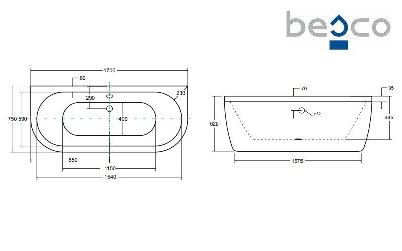 Nazwa produktu: Wanna akrylowa Volya BescoDługość: 170 cm