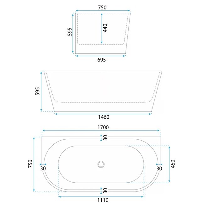 Opis produktu Wanna wolnostojąca przyścienna 170 cm Capri Slim Rea