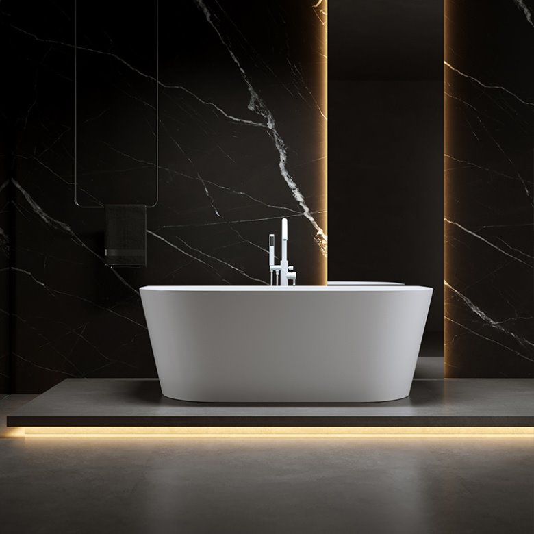Nasze wanny wolnostojące są wykonane z białego akrylu sanitarnego oraz wzmocnionego włókna szklanego, dodatkowo posiada powłokę Anti-Wipe. Każda z naszych wanien to połączenie nowoczesnego stylu z utrzymaniem komfortu użytkowania na najwyższym poziomie. Powierzchnia wanny jest idealnie gładka, bez jakichkolwiek śladów porowatości dzięki czemu jest bardzo łatwa do czyszczenia. Wysokiej jakości akryl sanitarny doskonale izoluje ciepło oraz sprawia, że powierzchnia wykazuje dobrą ochronę przed brudem i zanieczyszczeniami. Prostokątny kształt wanny pozwala na optymalne wykorzystanie przestrzeni przy zachowaniu maksymalnego komfortu podczas kąpieli.