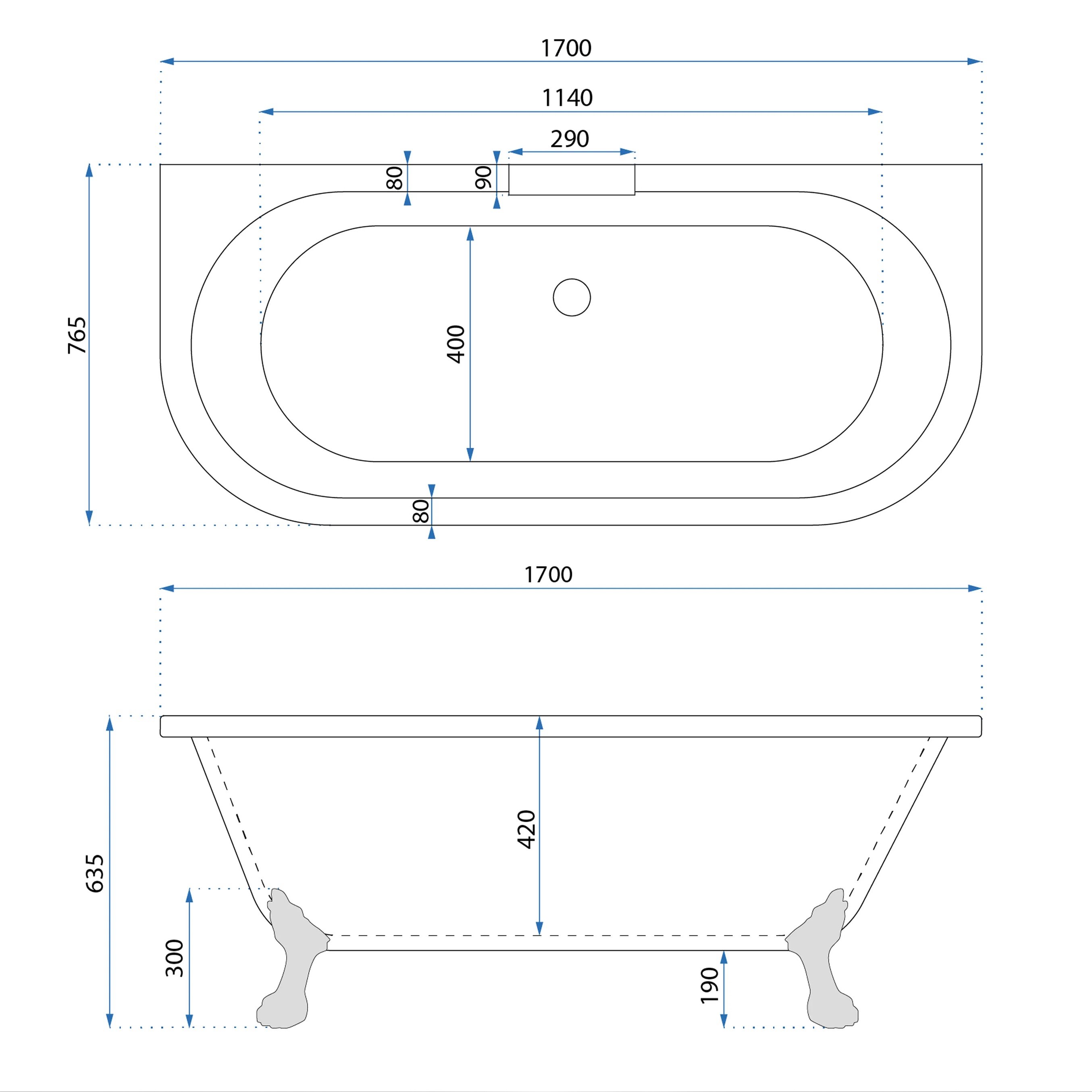 Opis produktu Wanna wolnostojąca przyścienna retro 170 cm Korfu Rea