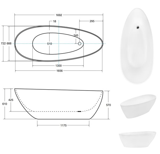 Opis produktu Wanna wolnostojąca z konglomeratu + klik-klak czarny Goya 170 Besco WMD-170-GKB