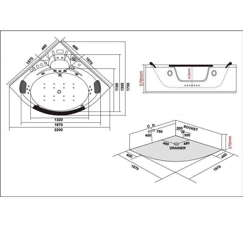 Opis produktu Wanna z hydromasażem narożna Orino 632 157x157